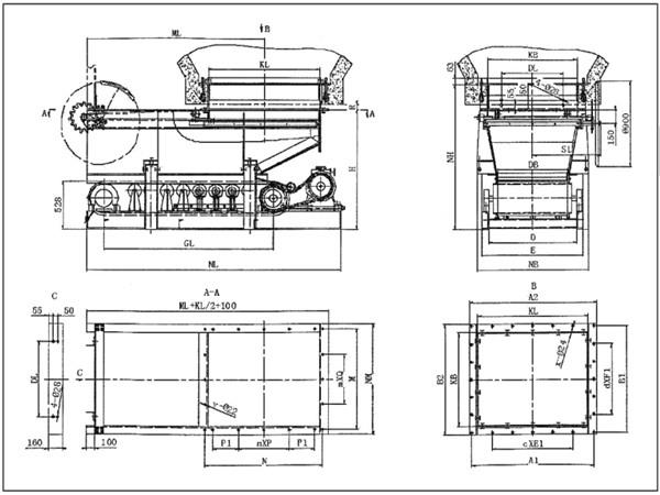 無撒料帶式(甲帶)給料機的外形及連接尺寸: