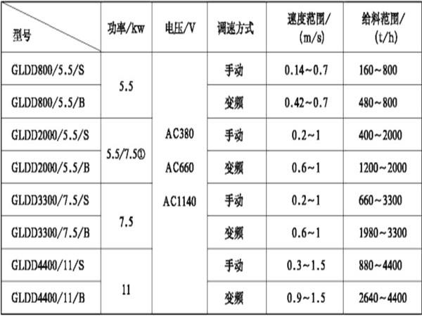 雙向帶式(甲帶)給料機技術(shù)參數(shù):