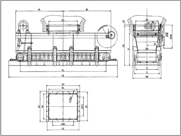 雙向帶式(甲帶)給料機的外形及連接尺寸: